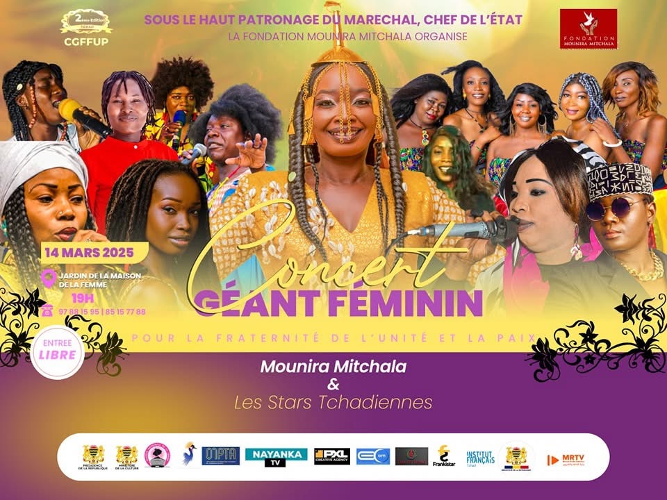 Organisé par la fondation Mounira Mitchala, le Concert Géant Féminin pour la Fraternité , l’Unité et la Paix, s’inscrit dans le cadre des célébrations du mois de la femme et a pour objectif de mettre en lumière le rôle central que joue la femme dans la construction de la paix et de l’unité dans la société tchadienne.